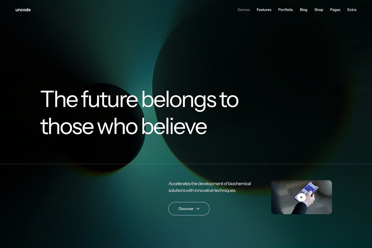 In Uncode, there are 28 Shape Dividers to pick from with just one click, or you can create your custom own by uploading an SVG code.